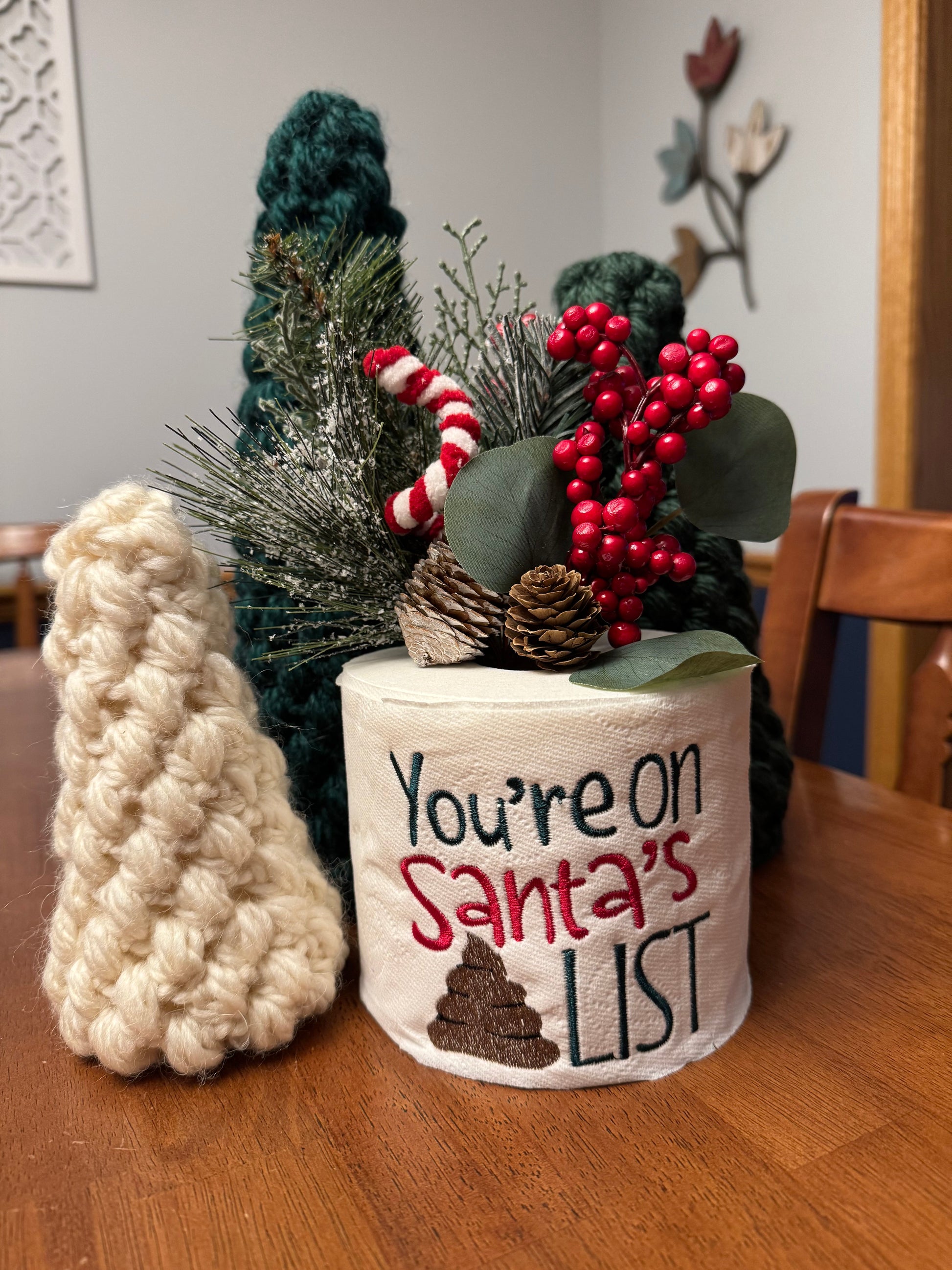 Give your guests something to giggle about this season with our handcrafted holiday toilet paper rolls! Whether you’re decking the halls or stuffing stockings, these rolls bring cheeky charm to every bathroom or gift basket.